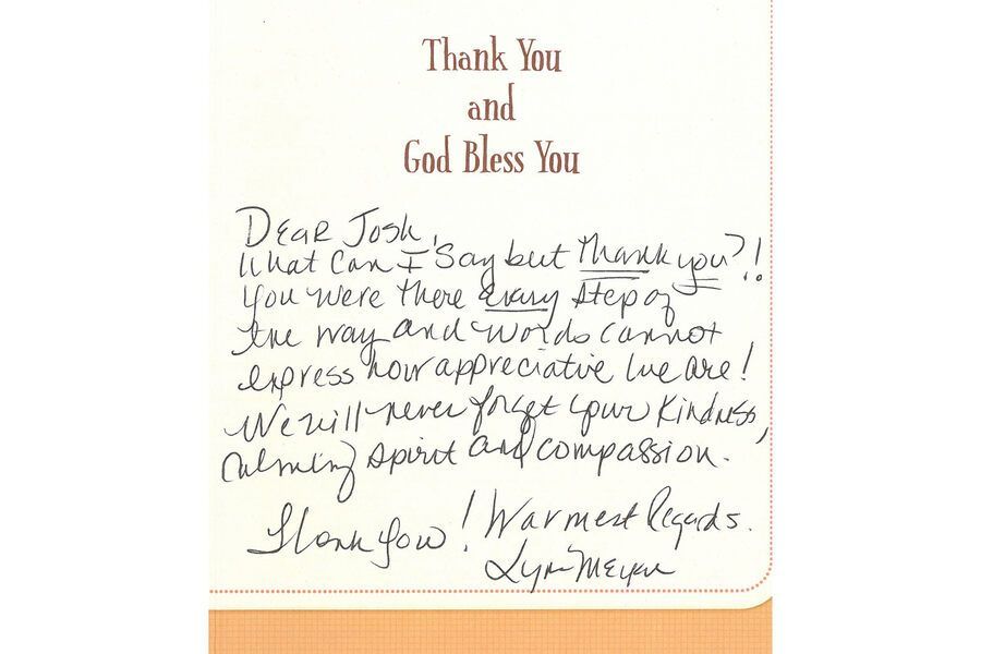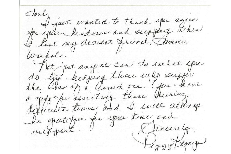 Josh did a wonderful job with everything regarding the funeral. I'm sure you know that he represents you very well.
