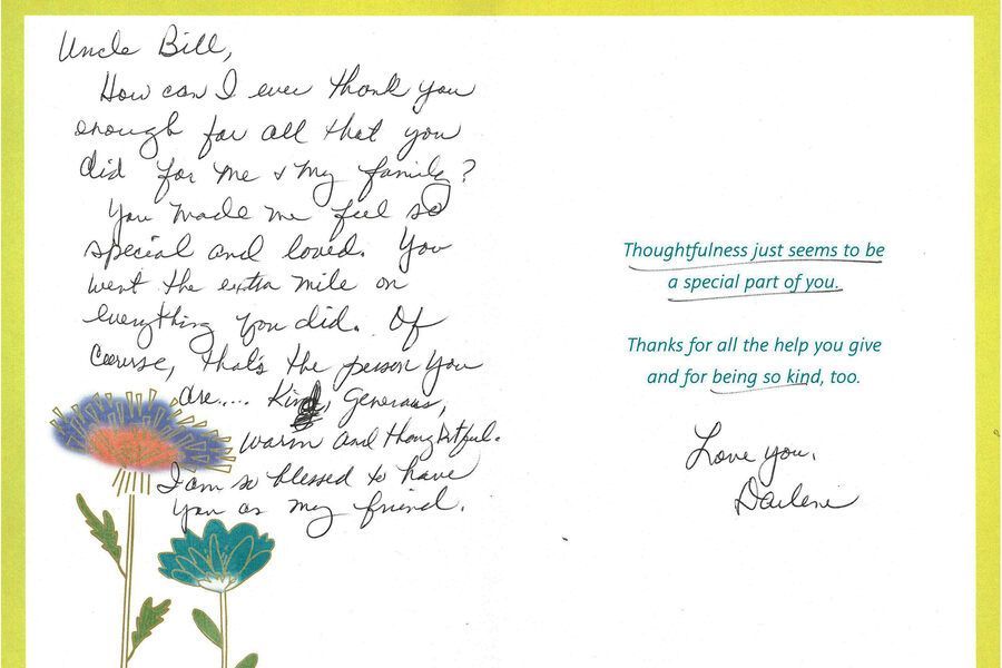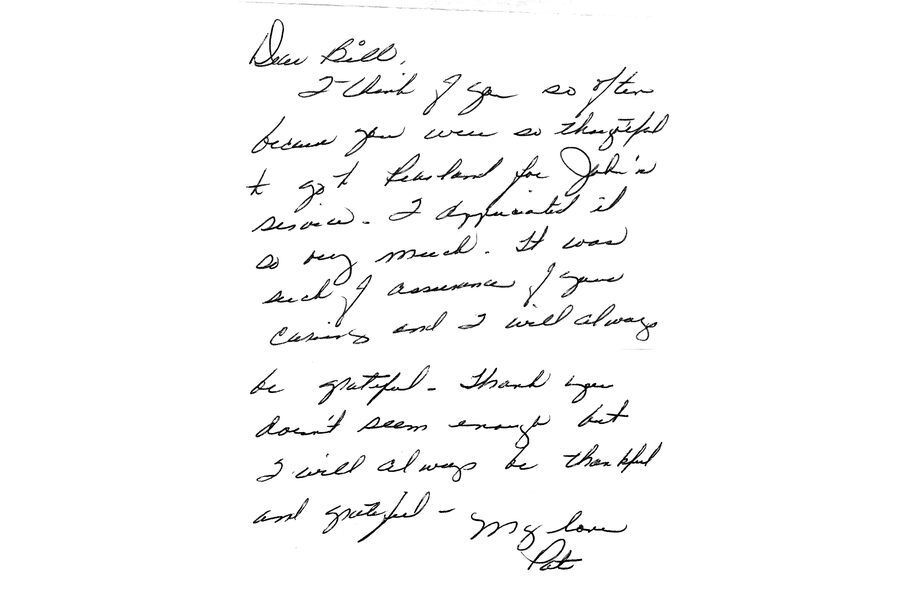 I think of you so often because you were so thoughtful to get a headboard for John’s service. I appreciated it so very much. It was such a reassurance of your caring and I will always be grateful. Thank you doesn’t seem enough but I will always be thankful and grateful.