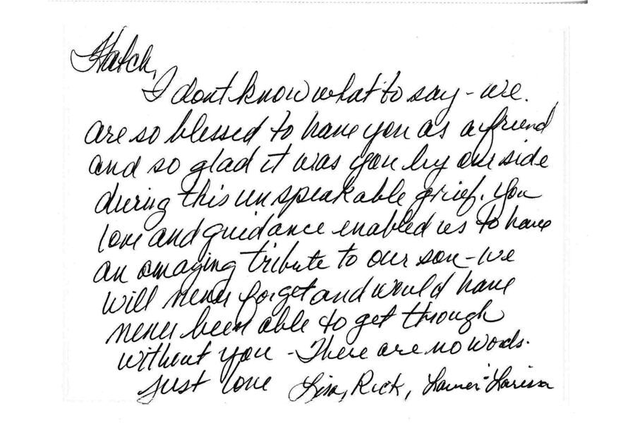 Hatch, I don’t know what to say - we are so blessed to have you as a friend and so glad it was you by our side during this unspeakable grief. Your love and guidance enabled us to have an amazing tribute to our son - we will never forget and would have never been able to get through without you - there are no words. Just love